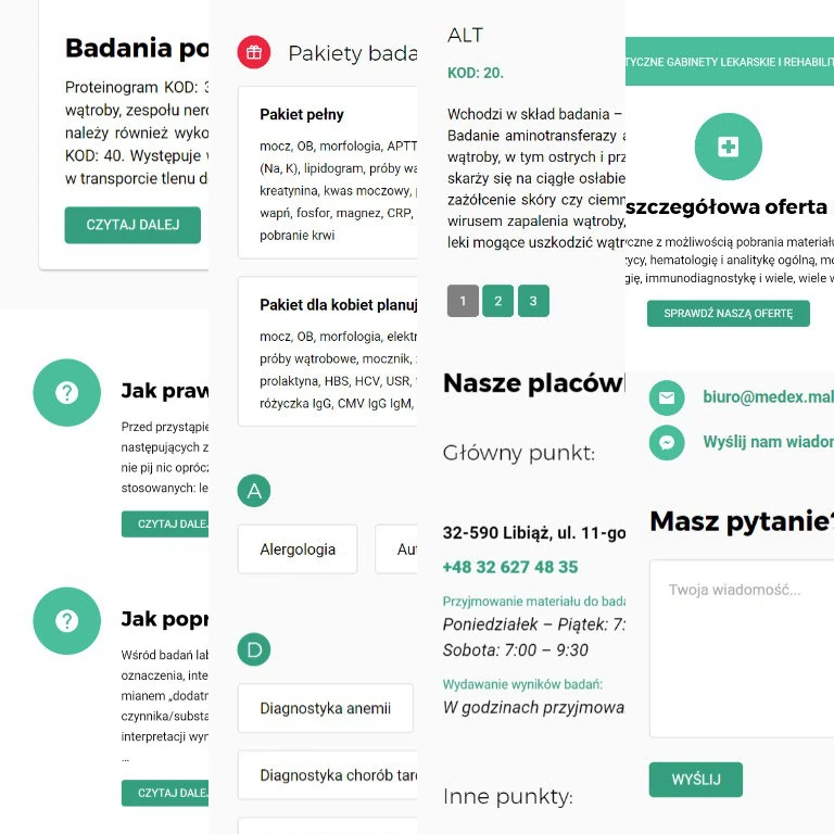 WordPress theme created for a diagnostic clinic. CSS and the overall structure of the site were created completely from the ground up. The project aimed to create a site that would help find info about the clinic's offers, locations, and answers to some frequently asked questions.